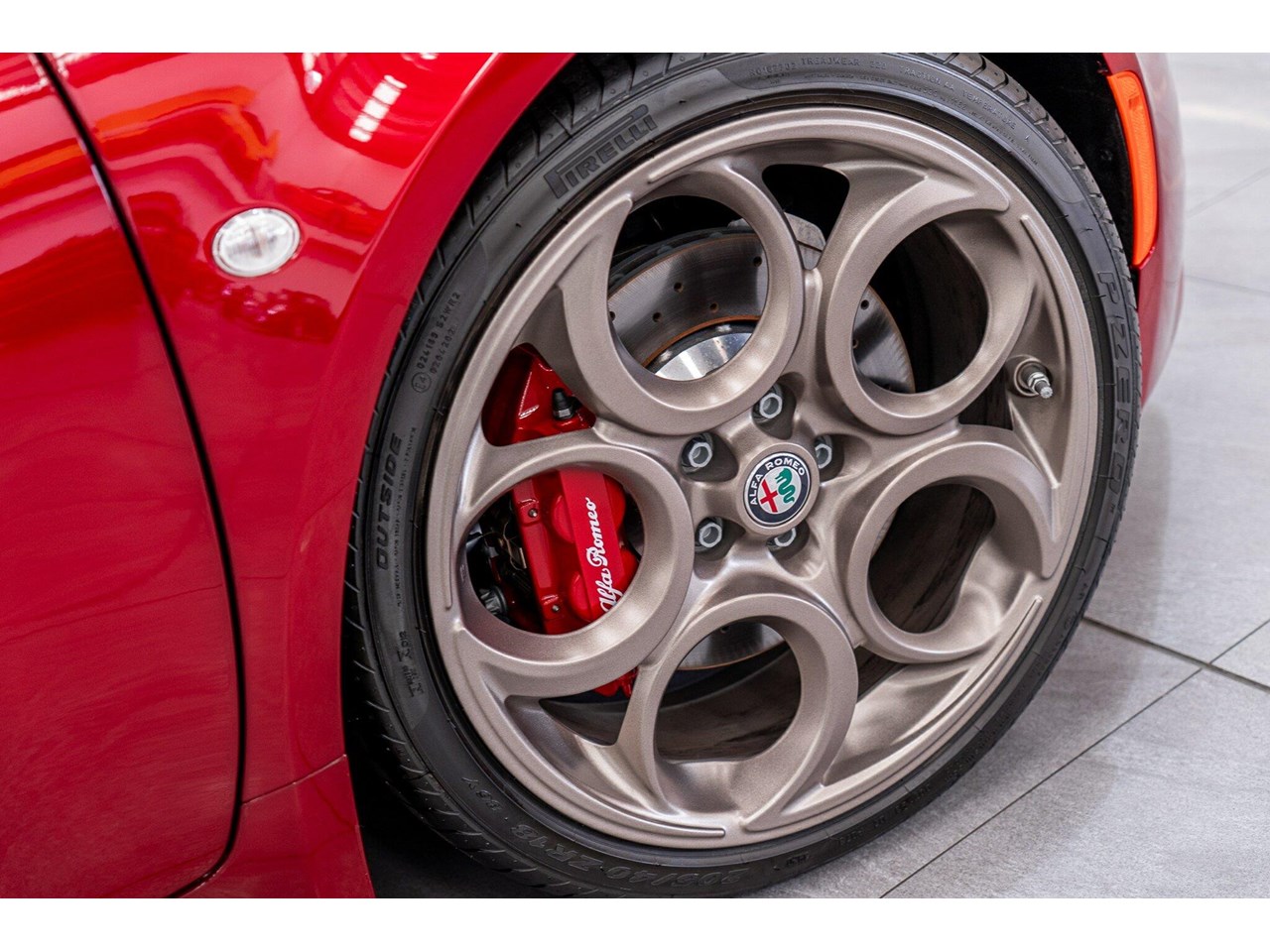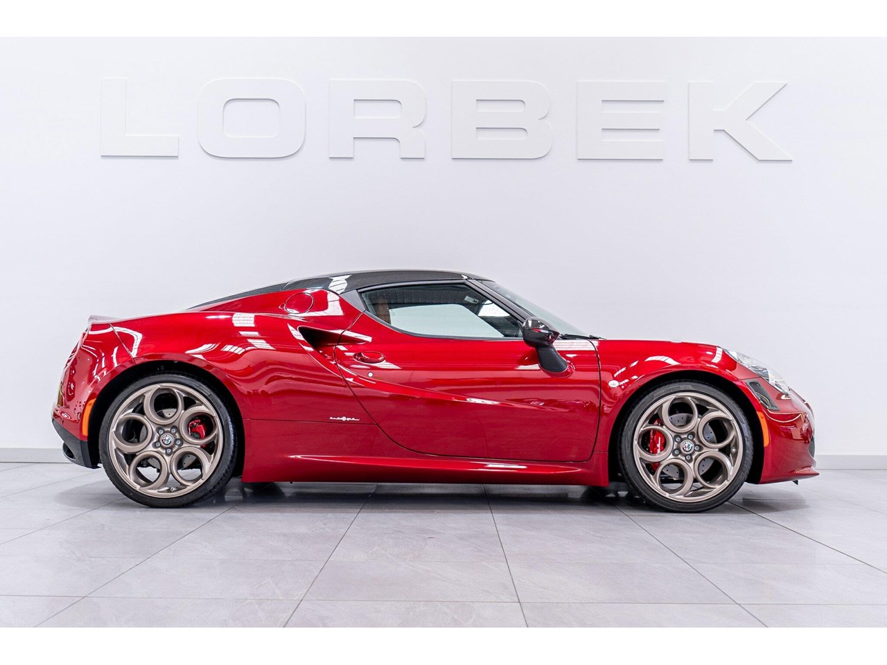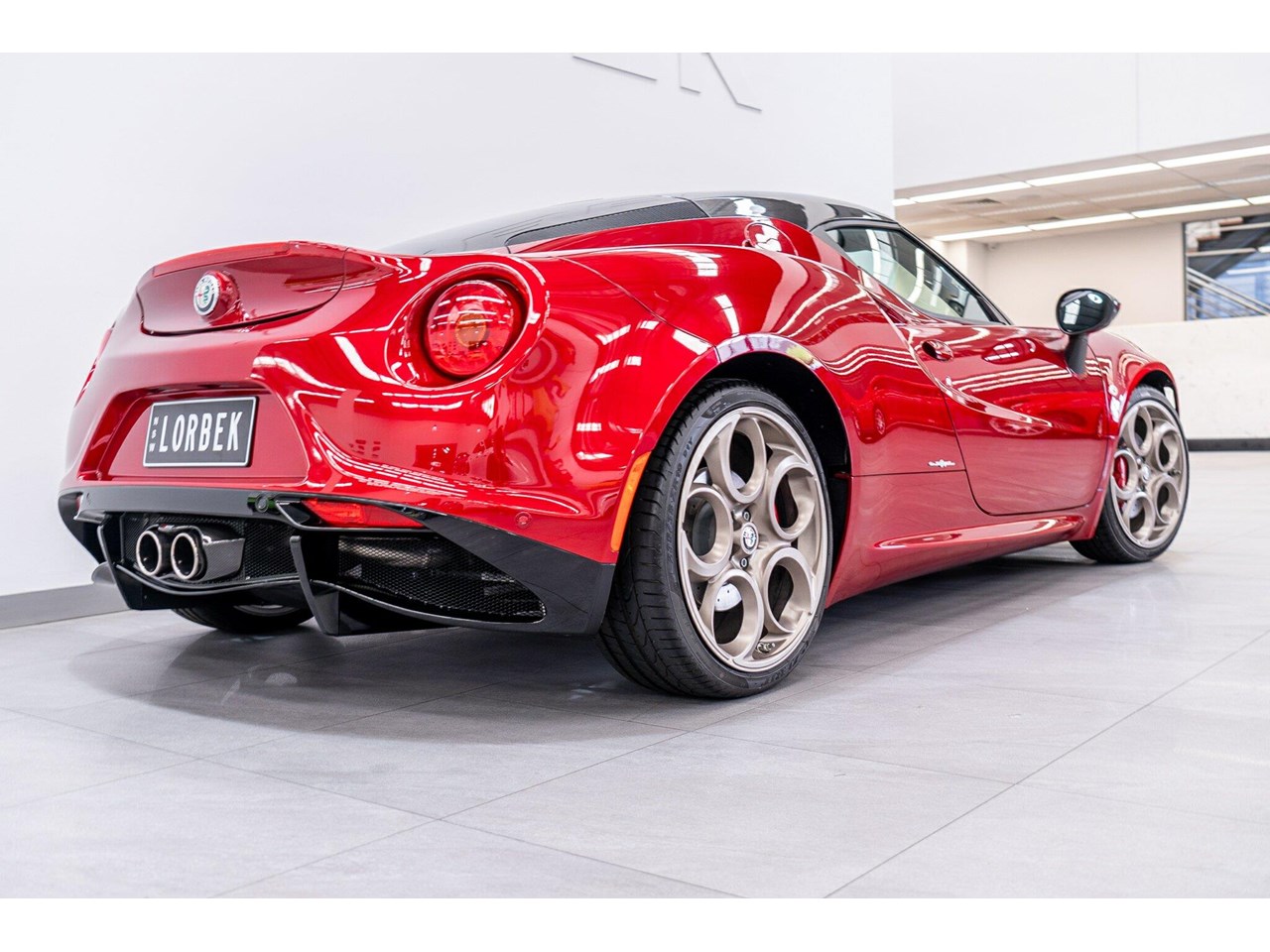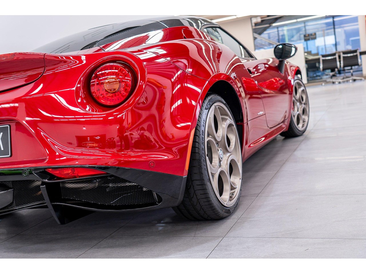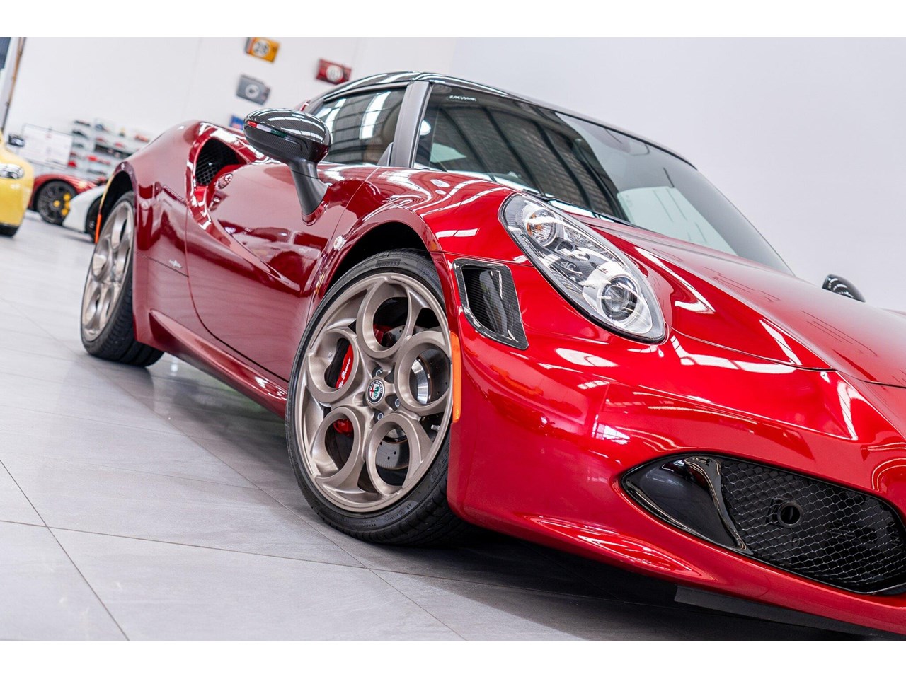 Compared to the ?standard? 4C, the Tributo adds heritage-inspired styling : exclusive distinctive Rosso Villa d?Este tri-coat red paint, grey-gold five-hole alloy wheels, and carbon-fibre mirror caps with the Italian flag, carbon-fibre roof and interior badging/plaques referencing the 33 Stradale.