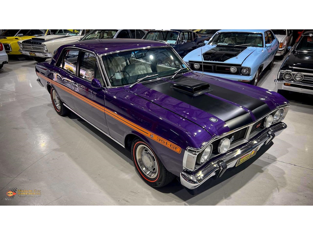 Ask any die-hard Falcon GT enthusiast what their favourite colour is on an XY GT and sure enough one of them would be Wild Violet and with the number of times it has been replicated is evidence of this. Add white trim and orange stripes and you have what is easily a timeless look. This car, originally fitted with a V8 and a Top Loader has been transformed into a lovely example of a Falcon GT replica. Featuring all the bells and whistles with everything from the 351 Cleveland engine to the GT interior and five slot wheels and all the other GT components. Other additions include a rear venetian and a 36-gallon fuel tank. This beautiful XY GT replica presents great value and is a perfect entry level car into the muscle car scene. Please contact one of our friendly staff to make an appointment to view this car at our Kogarah showroom.