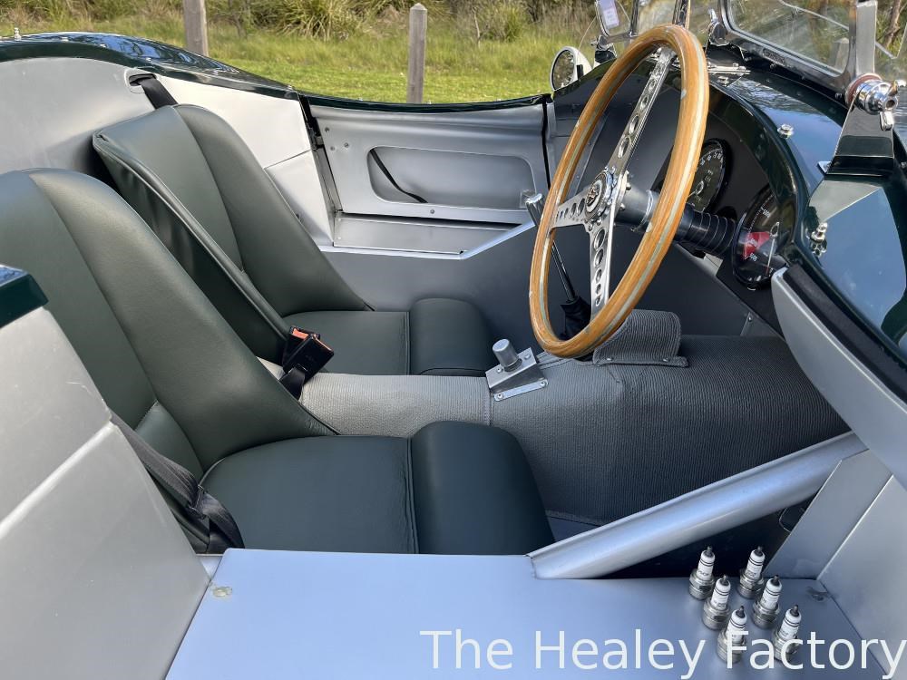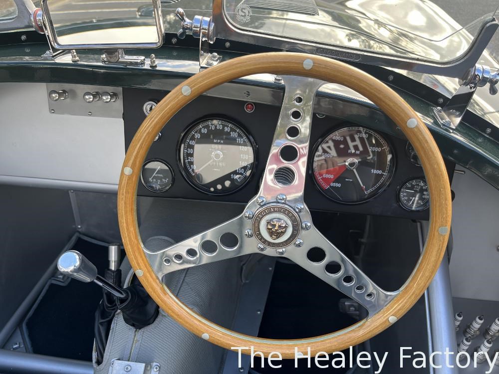 Built to Tool Room Plus specification this C-Type has been uprated with the 3.4L XK engine replaced by the larger 3.8L variant (block sourced from a Mk IX & cylinder head from a S-Type) as well as the fitment of: Overdrive, Pertronix Flame Thrower electronic ignition, a large thermatic fan in front of the copper cored radiator and four wheel disc brakes (as per the 1953 specification).